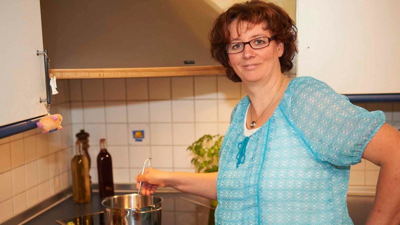 Für ihr Menü wird Landfrau Gaby noch mehr Produkte ihres Hofes verwenden: Schweinefilets aus eigener Schlachtung und eigens für die Sauce geerntete Äpfel.